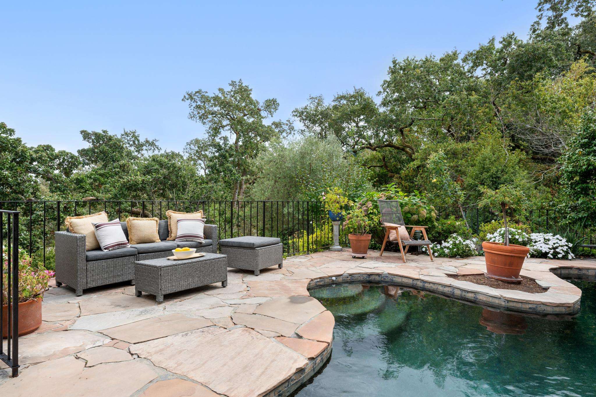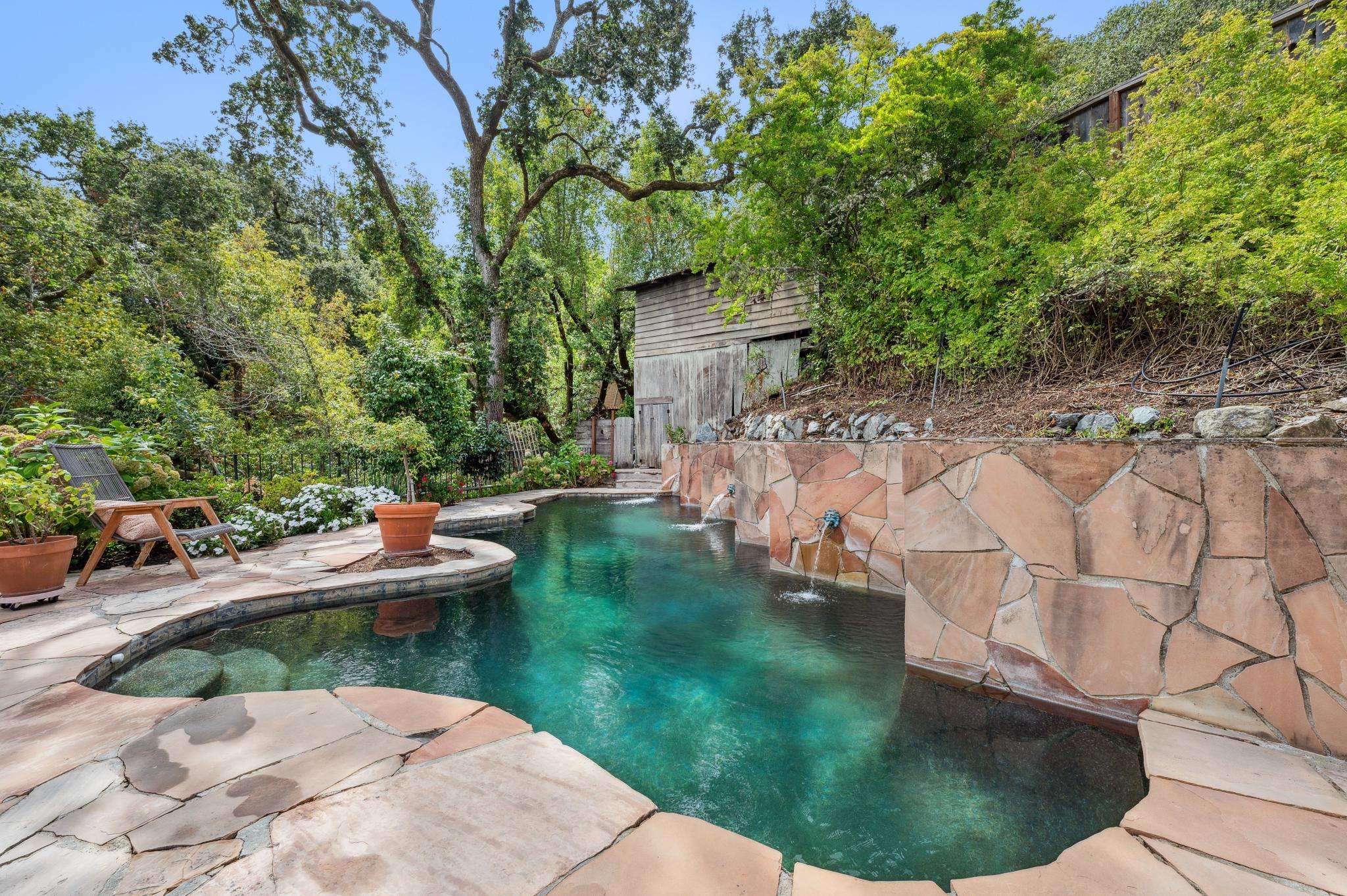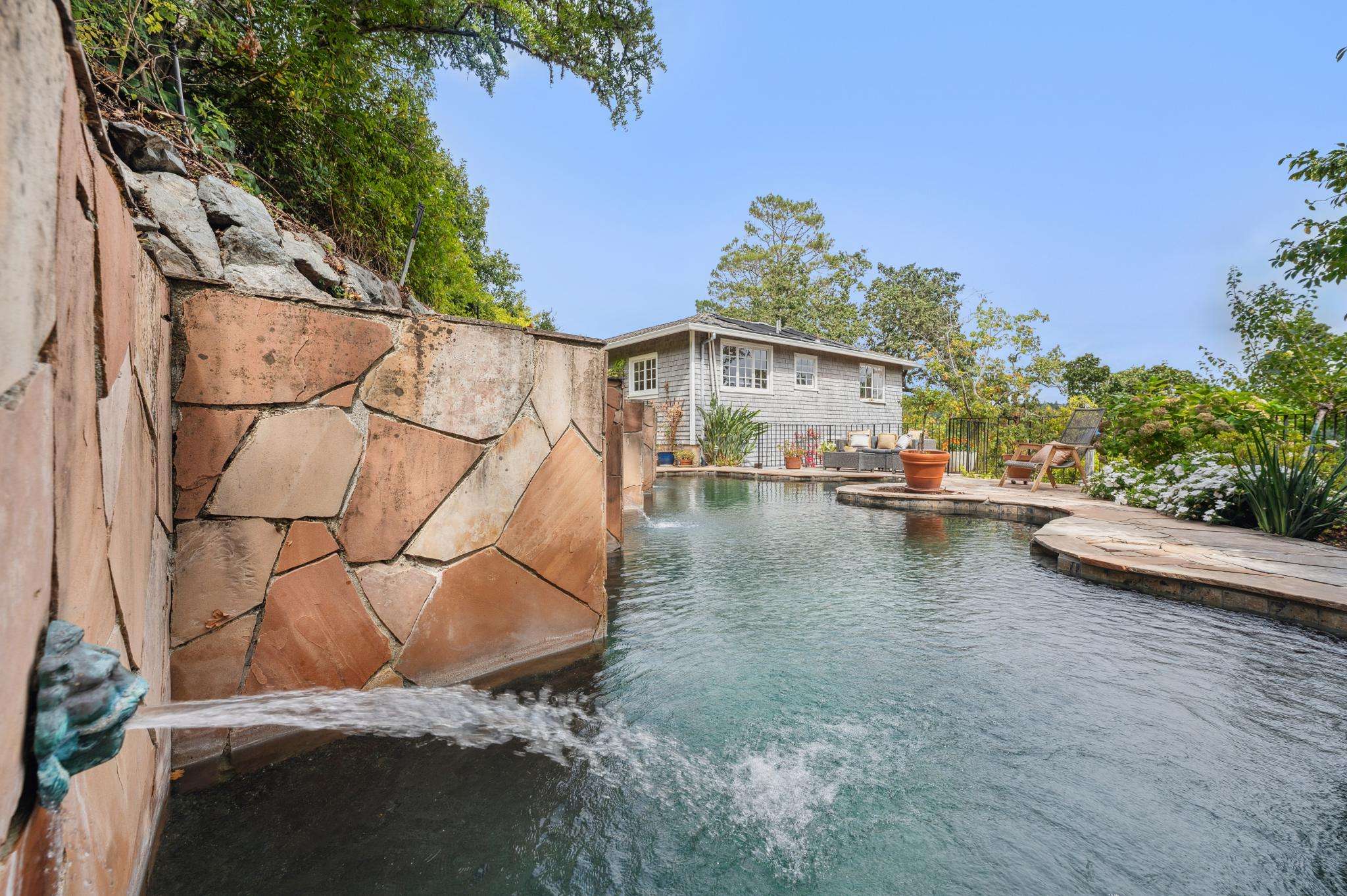 The backyard is where the magic happens. Imagine mornings that begin with a refreshing swim in your custom-designed pool—so stunning it feels lifted from a magazine. Afternoons drift by as you lounge in the sun, while evenings bring gatherings under the stars. The views from the yard to the surrounding hills are so vibrant, “you won’t have enough colors in your imagination” to take them all in.